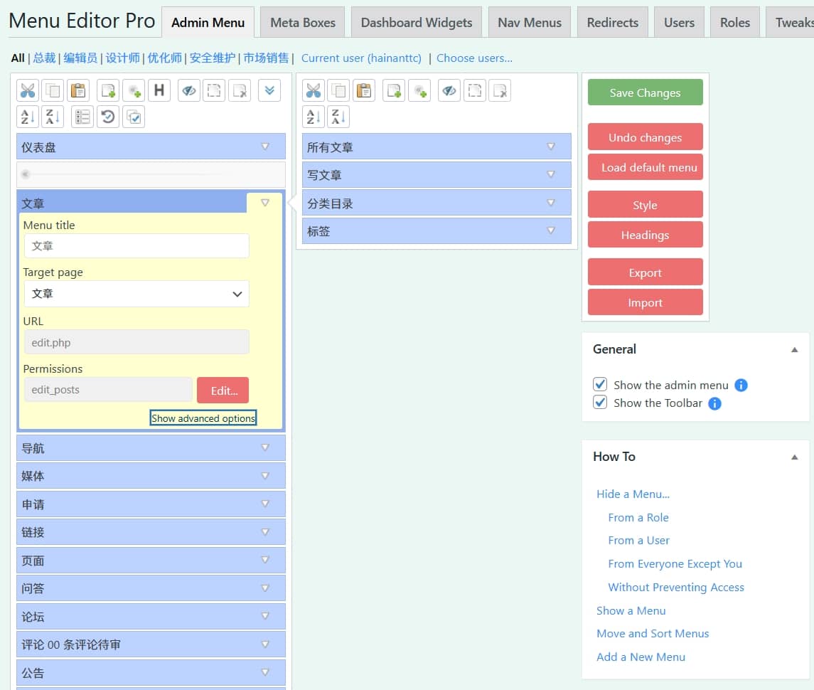 - 定制菜单:可自定义WordPress管理后台的菜单,包括添加、编辑、移动或隐藏菜单项。