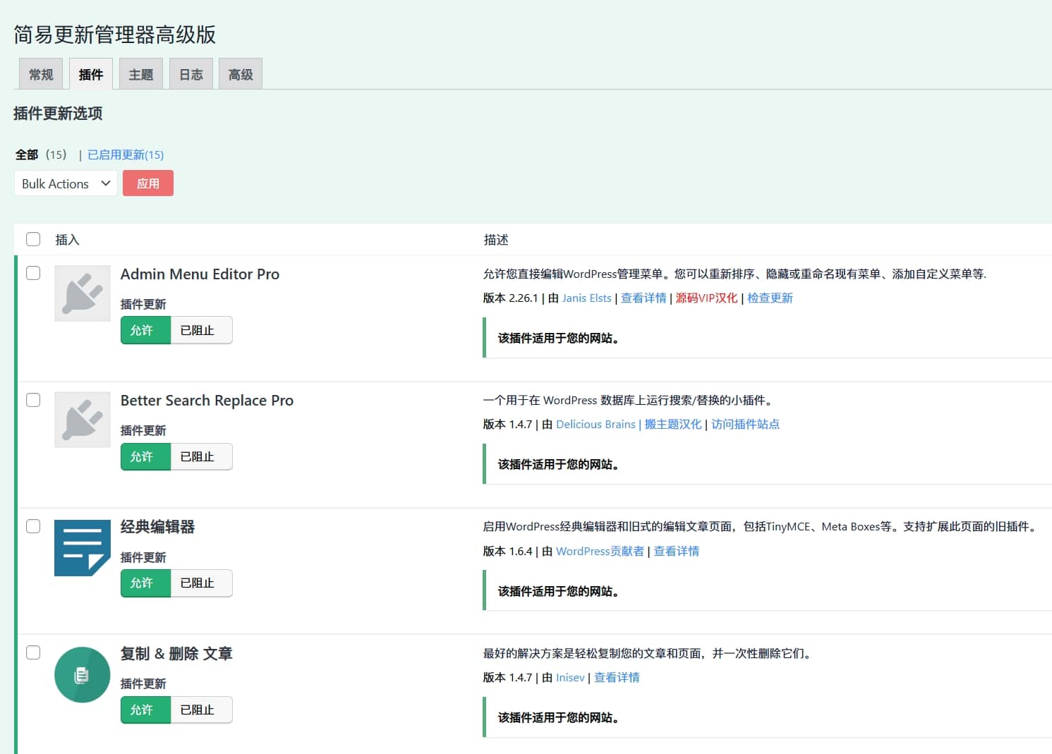 Easy Updates Manager Premium – 插件汉化演示截图: