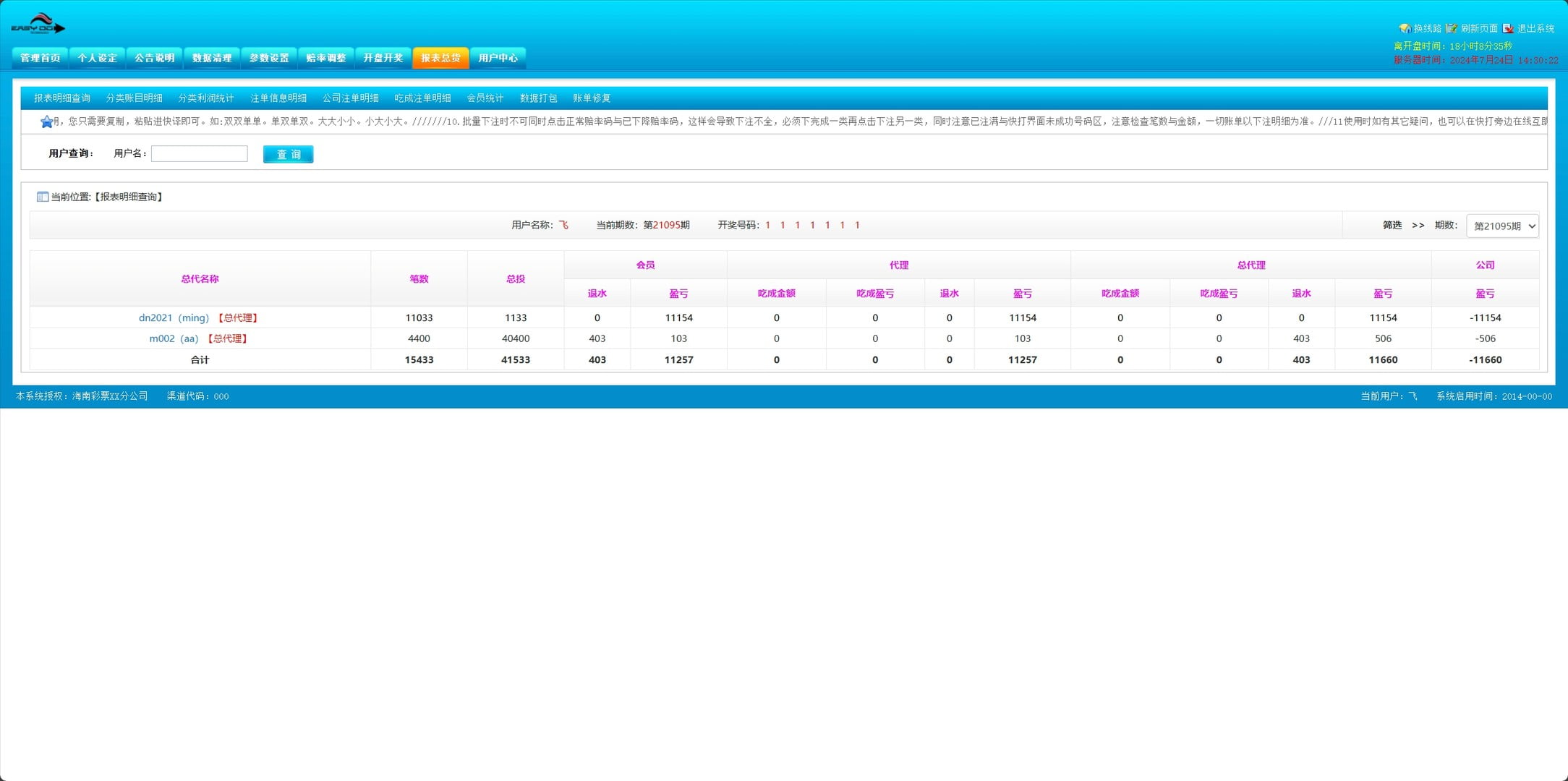 - 代理总报表