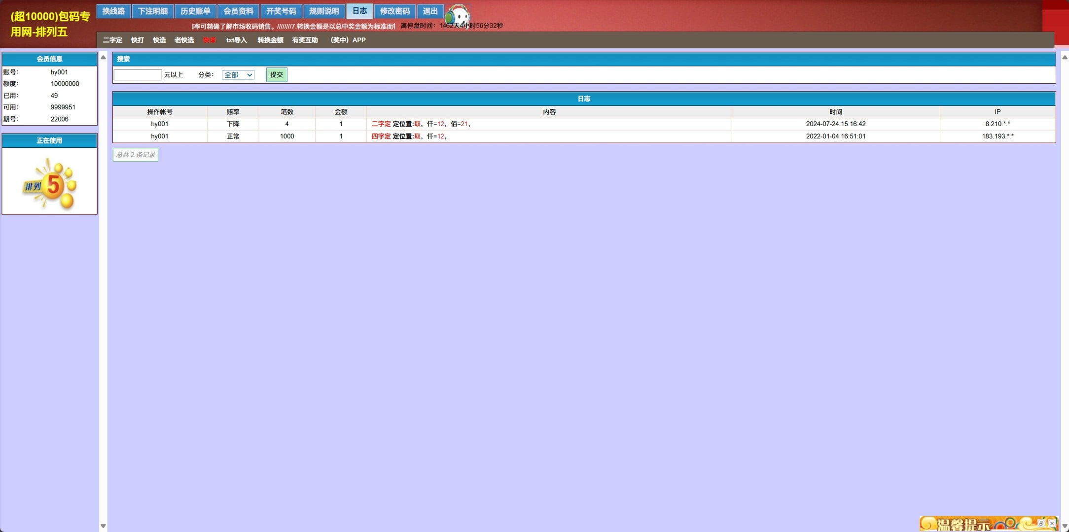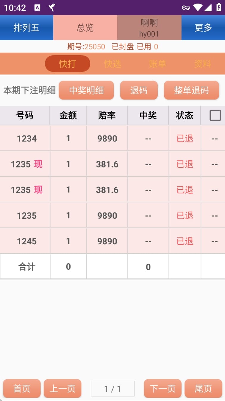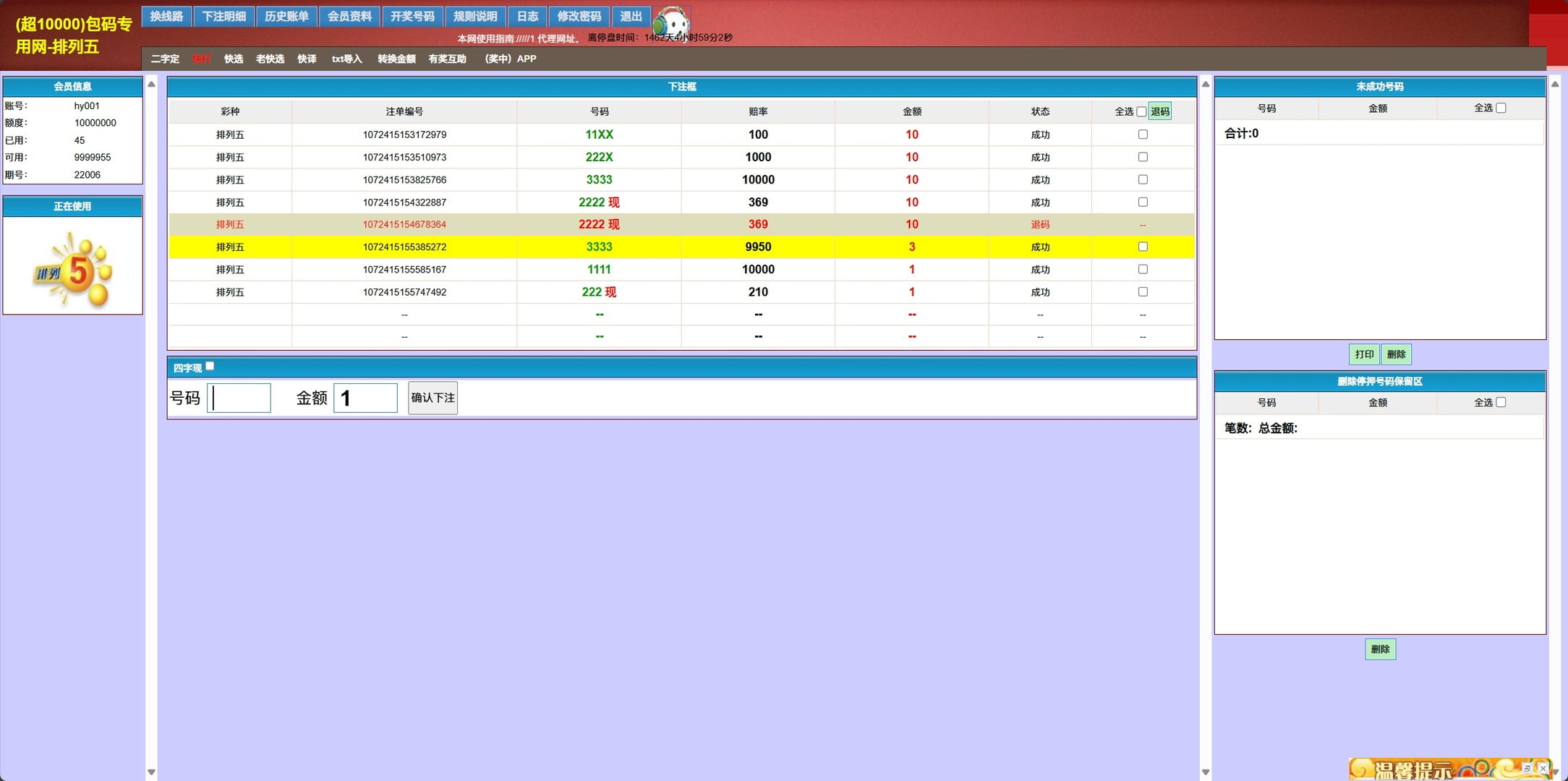 海南七星彩排列五传统打奖系统演示图: