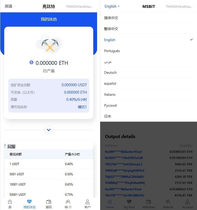 挖矿秒U源码:授权提币、10国语言、详细安装教程|演示图: