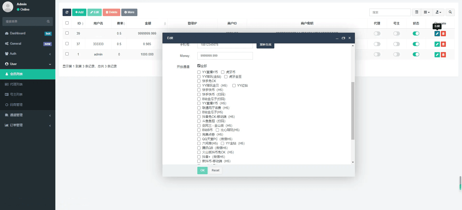 - 根据需求配置支付通道,选择适合您的支付方式。