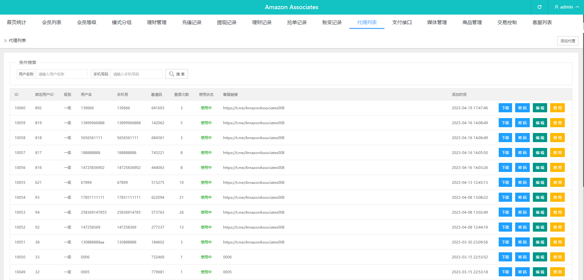 - 代理功能:支持用户成为平台代理,享受更多的收益。