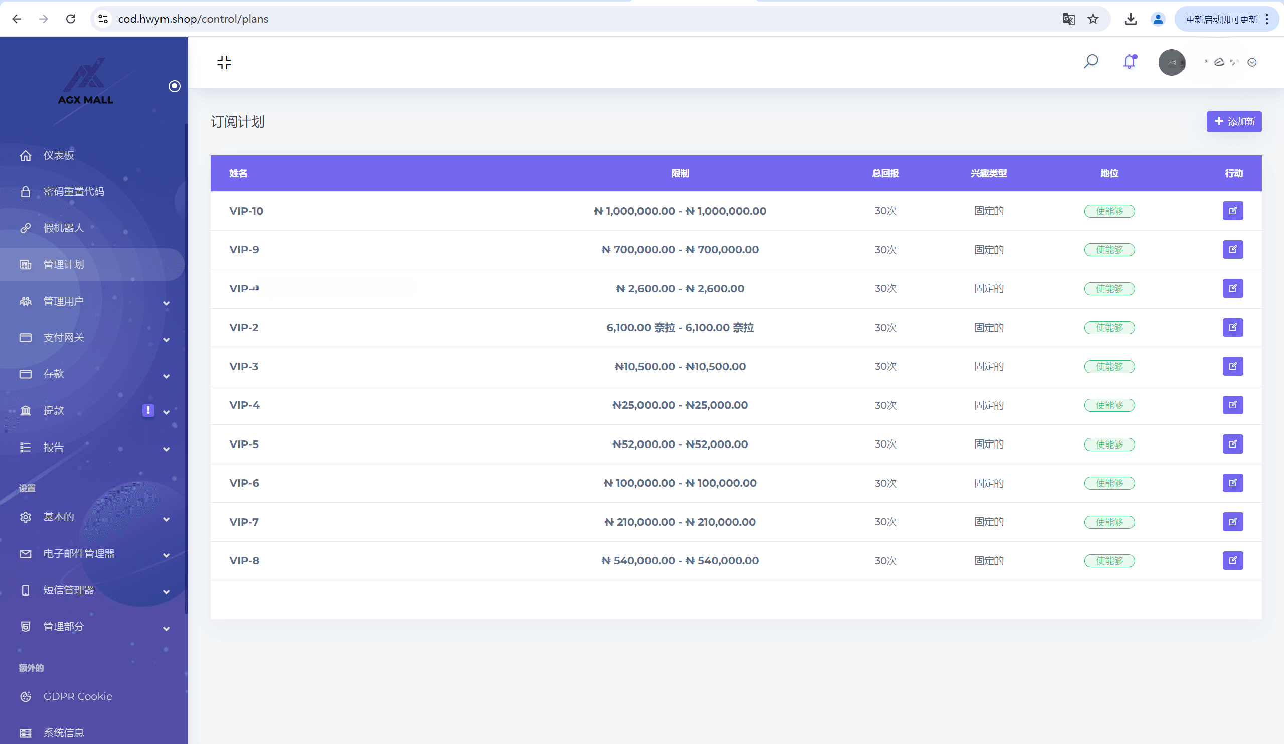 - 资金管理:实时财务数据展示,包括用户充值、提现、收益等记录。